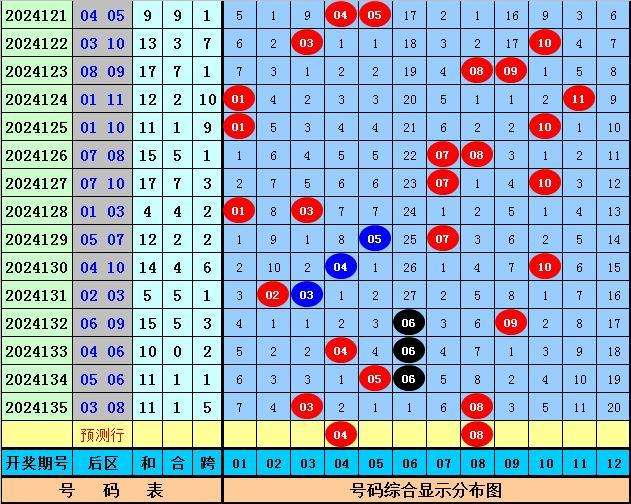 前区三区走势(一区01-12段,二区13-23段,三区24-35段):上期前区三区比为2:1:2,三区号码走势基本持平,最近10期三区比为23:10:17,二区号码表现较冷,本期防一区号码断区,关注三区比0:2:3。