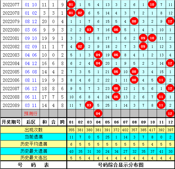 该位目前连续开出了3次热码奖号,本期预计再次出现热码,注意热码12。