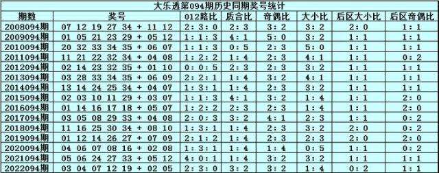 体彩大乐透第2023094期历史同期开奖号码分析: