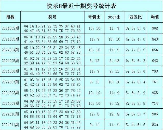福彩快乐8第2024011期开奖回顾:04 05 11 18 19 23 24 26 36 43 44 48 56 60 62 63 70 71 77 79,其中奖号四区比为5:4:5:6,奇偶比比为9:11,大小比为11:9,和值为839。