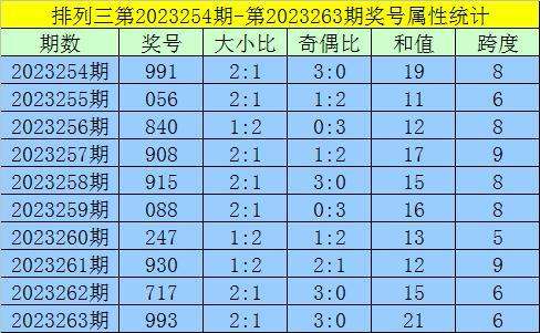 上期回顾:排列三第2023263期出现奖号993。开出组三,奇偶比3:0,012路比3:0:0,大小比2:1,和值21,跨度6。