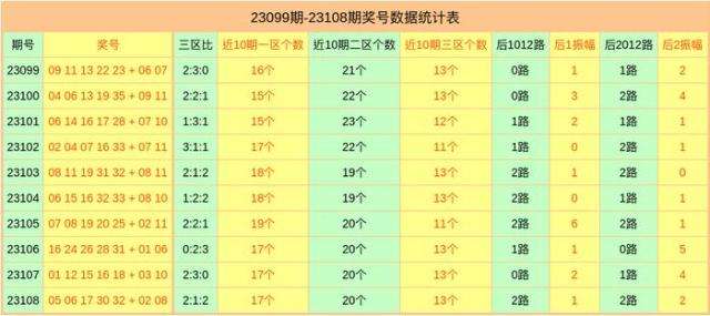 前三区分析:第23108期前区号码在3分区开出2个号码,该区近10期开出了13个号码。经过对比近10期该区号码后,发现上期该区号码表现较热,本期预计该区下号2枚,综合推荐:28、30。
