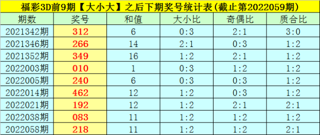 一、上期回顾:福彩3D第2022059期奖号为:727,奖号类型开出组三,大小比为2:1,奇偶比为2:1,和值为16,跨度为5,012路比为0:2:1。