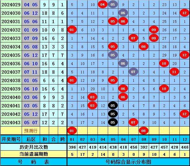 后区分析:上期后区开出一奇一偶、一大一小奖号05、07,近10期后区奖号奇偶比为12:8,奇数号码走势较热,后区奖号大小比为8:12,小号相对较热,本期预计后区奖号出现在01、05、06、07、08中,参考号码01、08。
