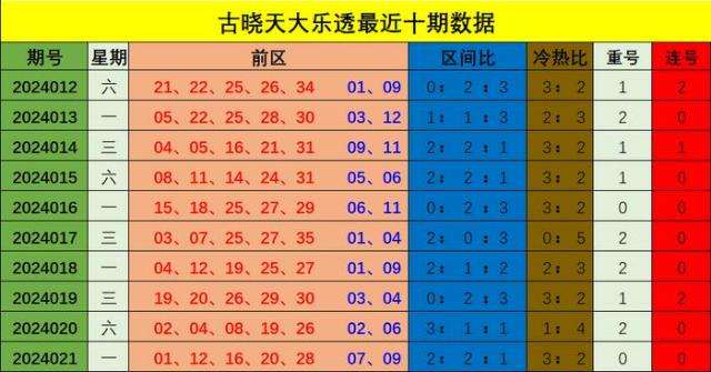 022期古晓天大乐透预测奖号:冷热走势解读