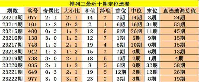 开奖回顾:排列三第2023222期奖号:977,定位直选遗漏值3期、8期、8期,遗漏总值为19期。