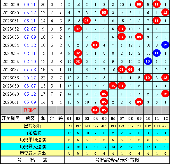 后区号码频次:号码03、08历史上没有出现,06号码开出频次最高,共出现7次。