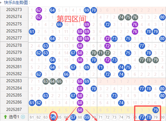 上期四区间开出了2奖号(68.79)上期的四区开2个奖号呈现了一个递减的趋势,6头开出的奖号1个,7头回补1个,先来看号码64在近 30 期内属于一个稳定号码但是本期是一个联动的落位码这个号码要注意防守,号码69有一定的间歇性活跃度稳定比如有时会间隔 4到5期就再次出现,近期整体出现频率比较热,近期还是要关注的.号码77活跃度近期也还是很稳定注意参考的是一个热号这里可以参考。号码78号近期的热度较冷整体不是很稳定注意参考。