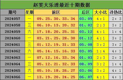 上期回顾:大乐透第2024066开奖,本期奖号:前区13 19 20 24 25,后区06 07。当期前区号码大小比为4:1,三区比0:4:1,奇偶比3:2。前区开出连号19 20 24 25,未开出重号。