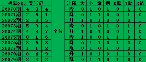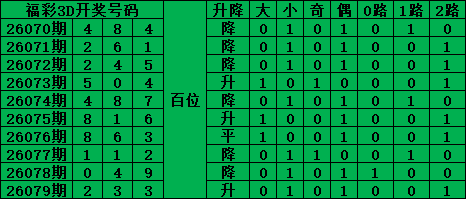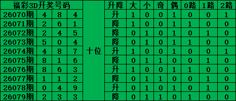 福彩3D是从0-9每期开出3个号码,截至2026079期三个位置最大遗漏的是30期的:个位的0号。