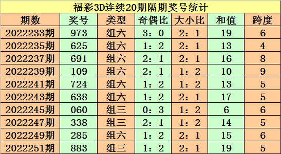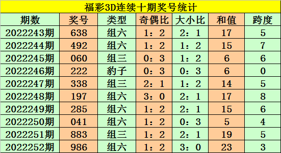 上期回顾:福彩3D第2022252期奖号:986。组六、大大大、奇偶偶。