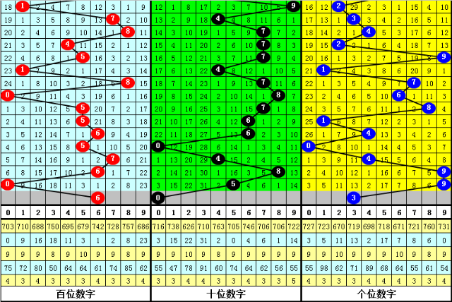 前7期012路比为3:1:3,1路号码走势较冷,目前012路号码遗漏值分别为:0期、2期和3期,本期该位注意0路号码。