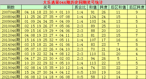 柯群大乐透第2022046期奖号冷温热码分析:(热码:遗漏0-3期号码,温码:遗漏4-9期号码,冷码:遗漏9期以上的号码)