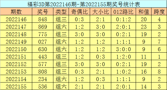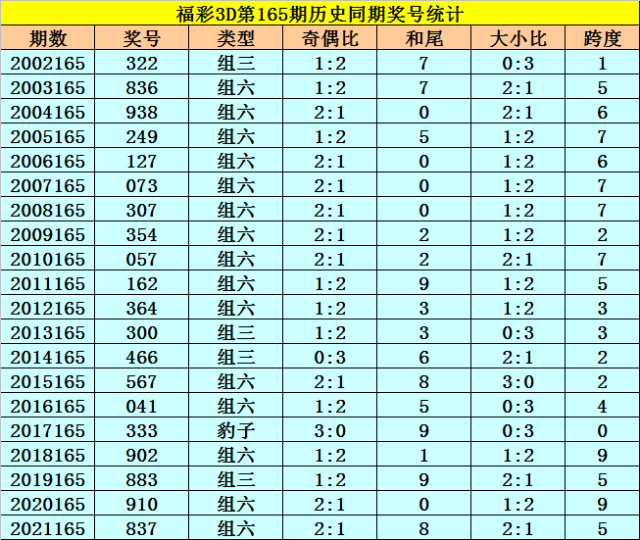 上期回顾:福彩3D第2022165期开奖号码为708,组选类型为组六,奇偶比为1:2,大小比为2:1。