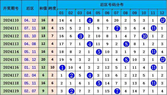 后区走势分析:上期开出偶奇组合:02 07,本期预计开出奇偶组合01 08。
