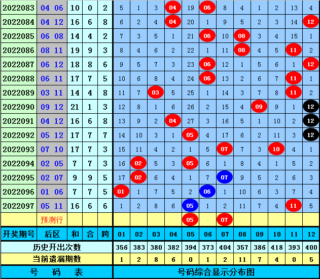 前区第三位:上期开出奖号22,出现在第四区,最近5期出现范围在07-24区段,本期该位精选号码14。
