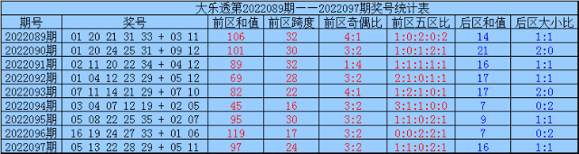 红月大乐透第22098期奖号分析: