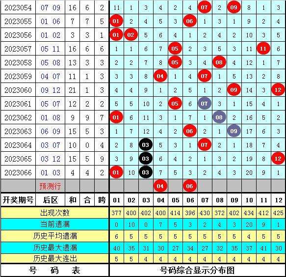 上期回顾:大乐透第23066期奖号为:06 11 13 30 32+01 03,其中前区号码012路比为2:1:2,后区号码012路比为1:1:0。