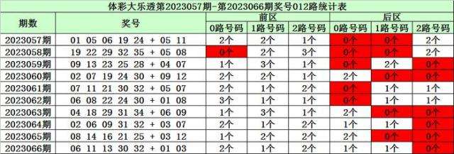 陈华大乐透第2023067期奖号012路分析: