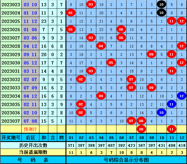 后区第二位推荐:在连续5期开奖中分别出号:09、12、11、10、08,均值为10。0,其中奇数奖号表现较冷,本期适当关注回补,参考奇数号码11。