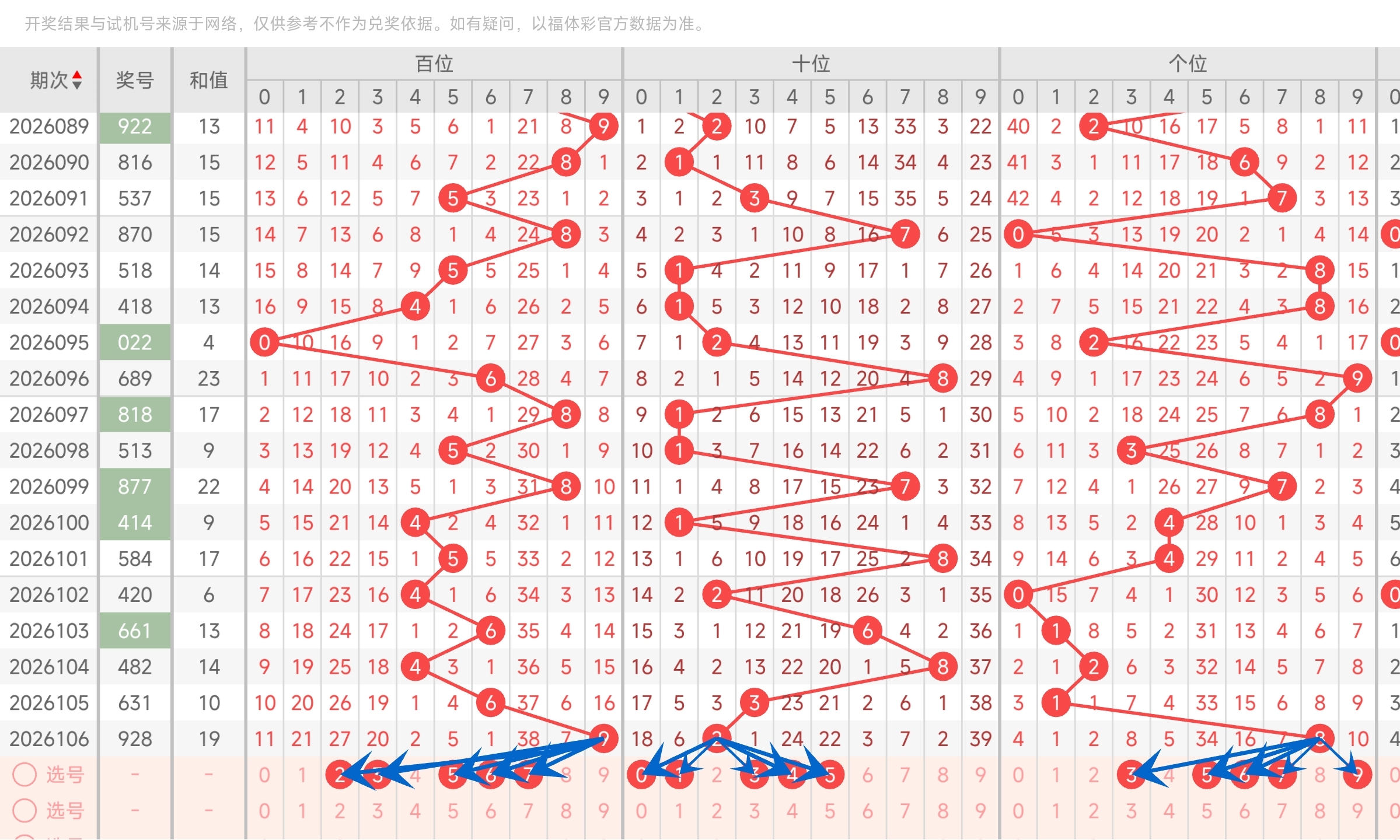 第2026091期福彩3D分析文章,67码复式命中537。