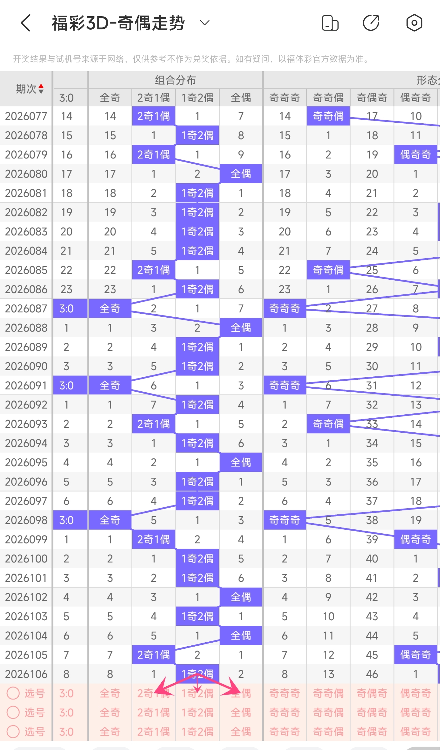 三、通过奇偶走势分析: