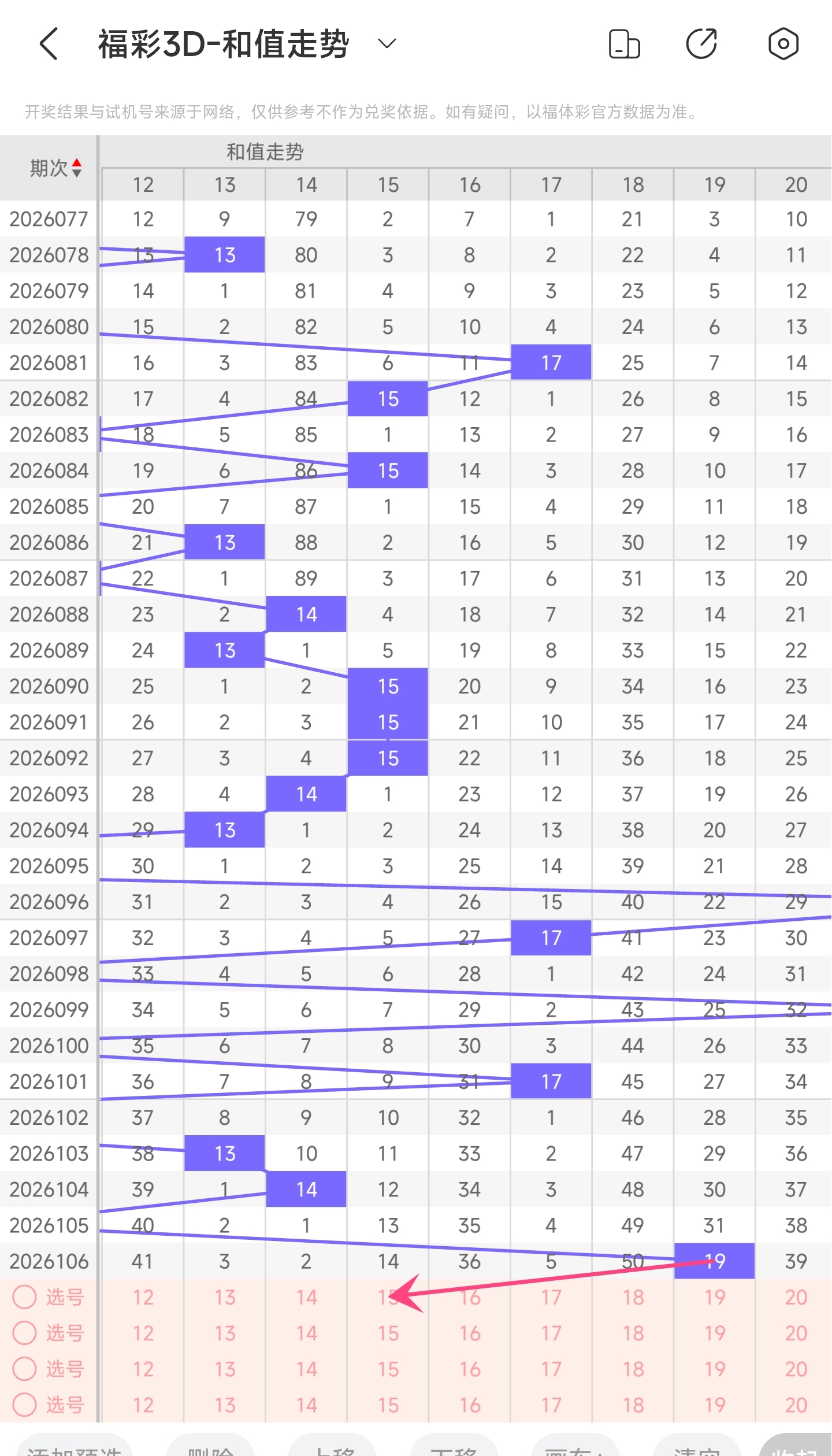 一、通过和值走势分析:
