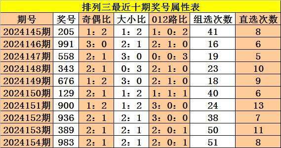 上期回顾:体彩排列三第2024154期奖号:983,奇偶比2:1,大小比2:1,012比2:0:1。