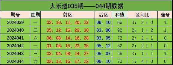 大乐透24044期开奖,本期奖号:前区03、13、15、17、22后区06、10。当期前区号码三区比为1:4:0,奇偶比为4:1。形态方面,前区未开出连号,开出重号03。