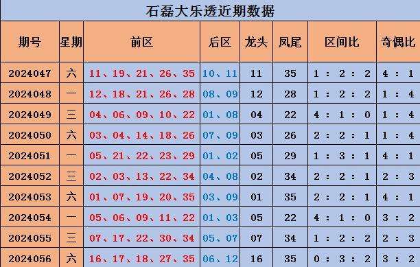 057期石磊大乐透预测奖号:前区奇偶比参考