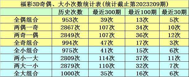 在前10期开奖中,两大一小组合出现2次,全大组合出现1次,全小组合出现4次,两小一大组合出现3次,本期预计开出两大一小组合。