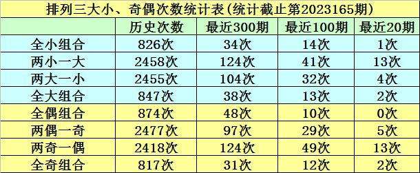 上期回顾:排列三第2023165期奖号:251。类型:组六,奇偶形态:偶奇奇,大小形态:小大小,和值:8,跨度:4。