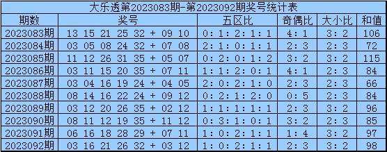 大乐透第23092期奖号为:03 16 21 26 32 + 03 12。