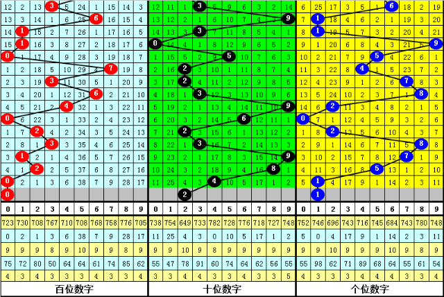 (2)在号码频次方面,开出个数最少的三个号码为:0、5、6,一般来说这三个号码不会同时出现,本期杀一码6;开出个数最多的四个号码分别为:2、3、1、4,本期看好这四个号码中包含1-2个开奖号码,胆码参考4。1。