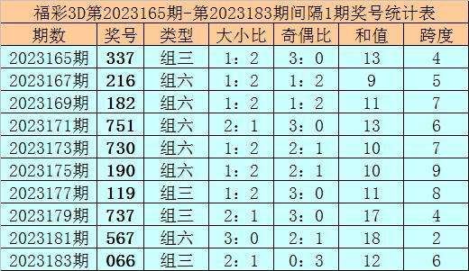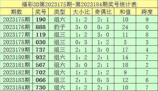 上期回顾:福彩3D第2023184期奖号:730。