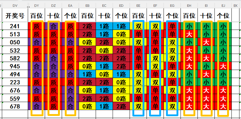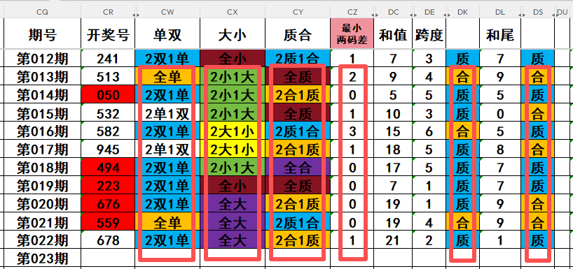 3,最近10天当中,两质一合开出2次,两合一质开出4次,全质数开出3次,全合数开出1次。近期需重点关注开奖号两质一合的回补!