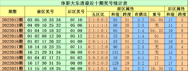 一、前区和值分析:在第022期历史同期奖号中,前区和值分别开出:78、90、112、65、106、107、60、60、75、108、55、99、55、101、99,出现范围在55-112之间,和值升降平次数比为8:5:1,第2021022期历史同期和值下降2个点位。本期预计和值大幅度上升,注意110-120区段。