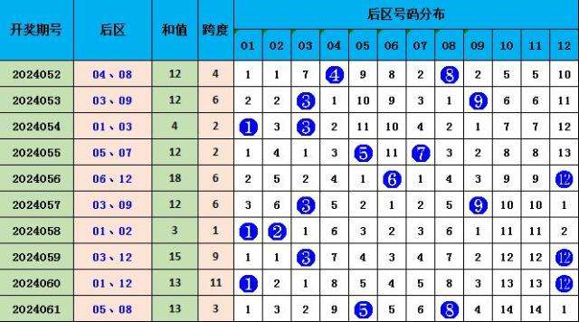上期开出号码05 08,近10期跨度4、6、2、2、6、6、1、9、11、3,本期后区推荐跨度2,大范围推荐:01 03 08 10 11,主推号码:01 039。