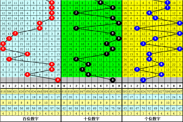下期奖号十位出现号码:012456,未出现号码3789,其中十位号码012路比为2:4:4,大小比为3:7,奇偶比为3:7,本期看好十位开出偶数号码,胆码关注8。