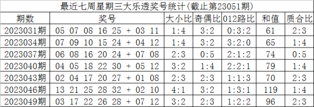 第2023052期大乐透星期三奖号分析: