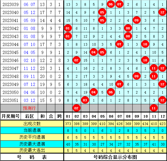 后区分析:最近7周星期三一大一小出现5期,全大出现2期,全小出现0期;全偶出现2期,一奇一偶出现4期,全奇出现1期,本期后区两码参考02和11。