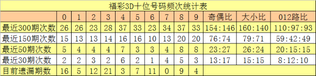 十位分析:前50期出号频次较高的号码为:8、9开出8次,4开出7次;出号频次较低的号码为:5、6开出3次,1、2、3、7开出4次。该位号码大小比为26:24,012路比为20:15:15。本期该位排除两码0、4,注意号码1、6、8,精选一码6。