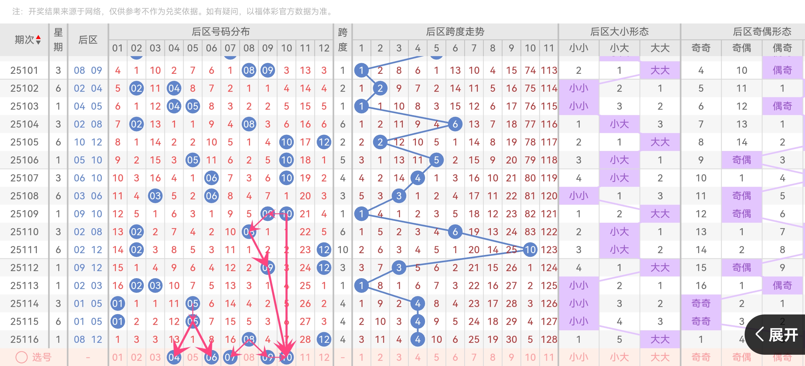 上期跨度4,本期主攻小跨度(≤3),如06+08、07+10