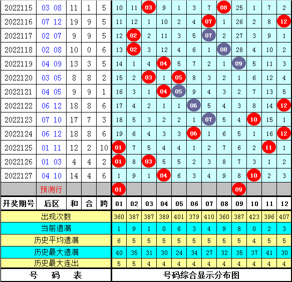 前区胆码参考:01 22