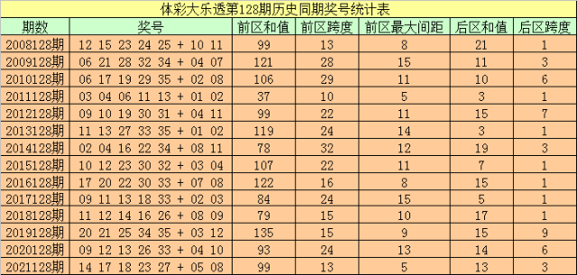 袁大爷第2022128期体彩大乐透历史同期奖号分析: