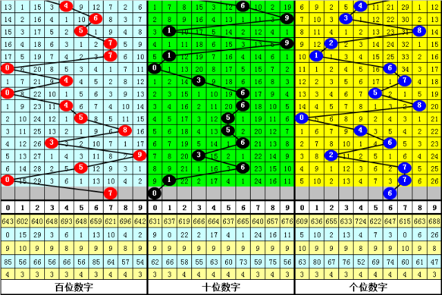 百位:大小比为2:1,奇偶比为2:1,本期参考号码7。