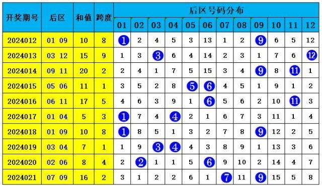 后区5码参考:02 03 05 08 12