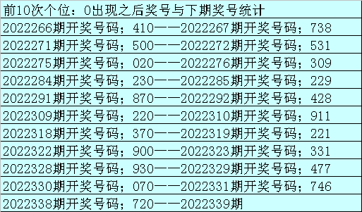 个位:上期开出号码0,遗漏7期,目前该位遗漏值最大的号码为2,遗漏22期,本期不会解冻。
