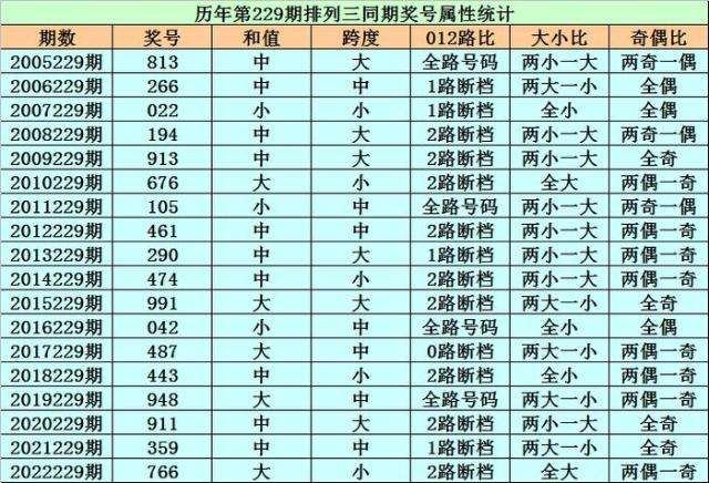 历史上第2023229期排列三已开出18期奖号了,历年同期奖号分别为:813、266、022、194、913、676、105、461、290、474、991、042、487、443、948、911、359、766,详细统计见下表: