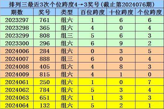 第2024061-第2024063期奖号:250、784、651,其下期奖号为:132,末位号码跨度为5;